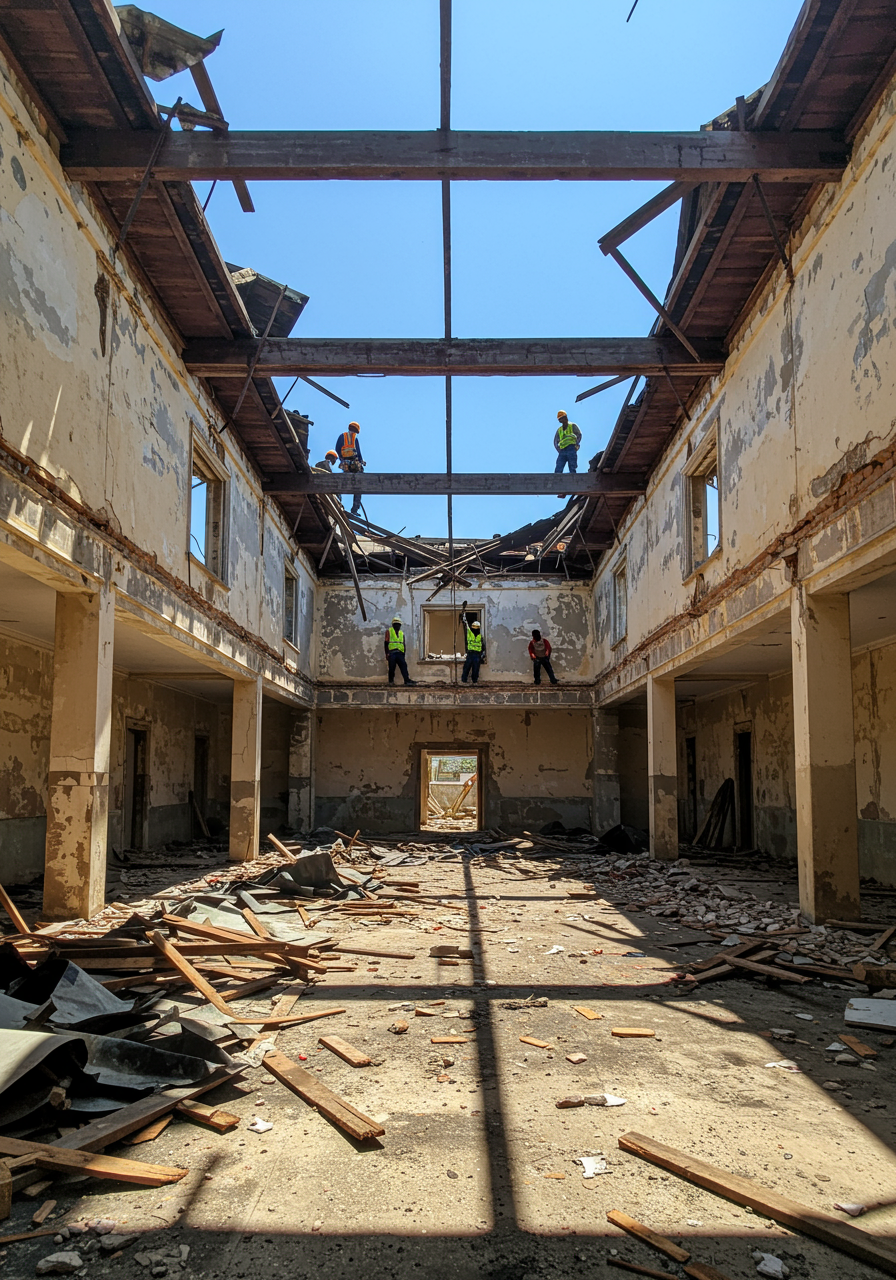 What we initially anticipated as manageable soon revealed itself to be far more daunting. Layer by layer, we peeled back years of renovations and makeshift fixes until we reached the buildings' original framework and essence. Yet, beneath the surface, we encountered a grim reality: years of neglect had left the structures in dire condition.
